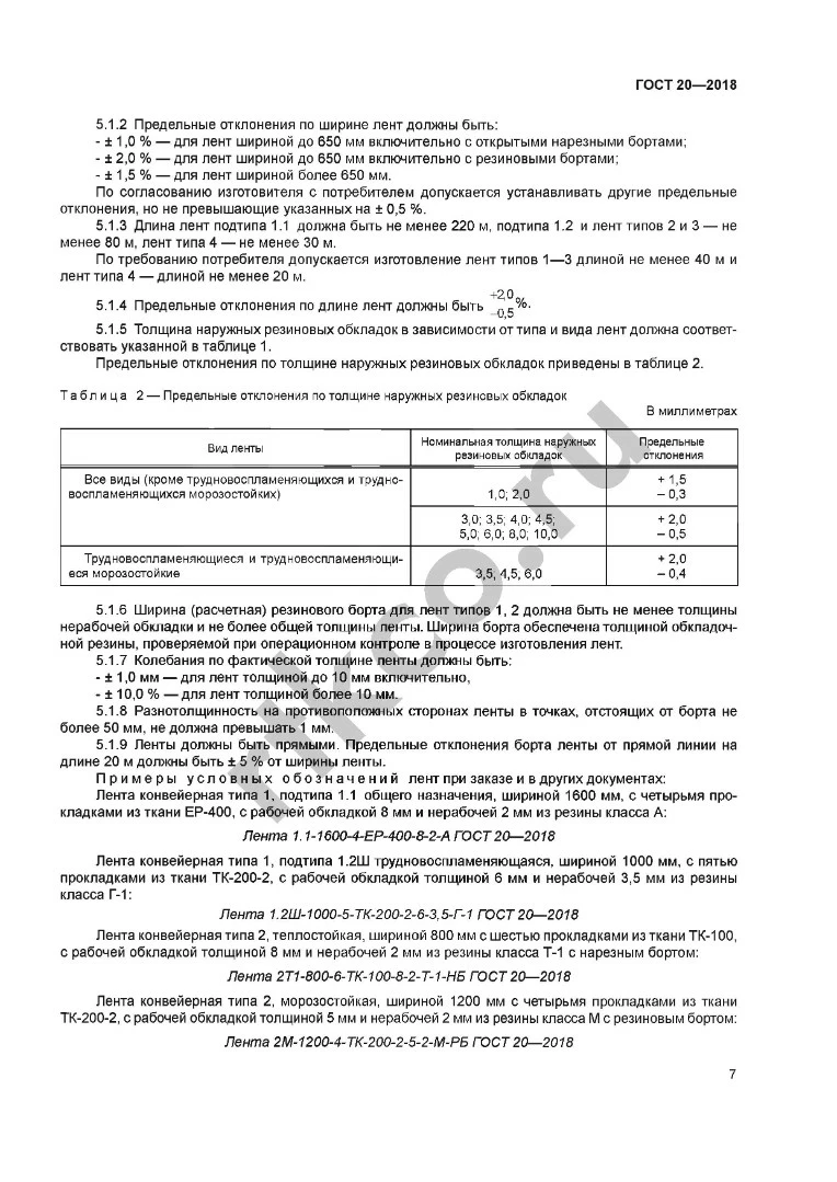 Ленты типа 2.1-2.2 применяются для транспортировки: